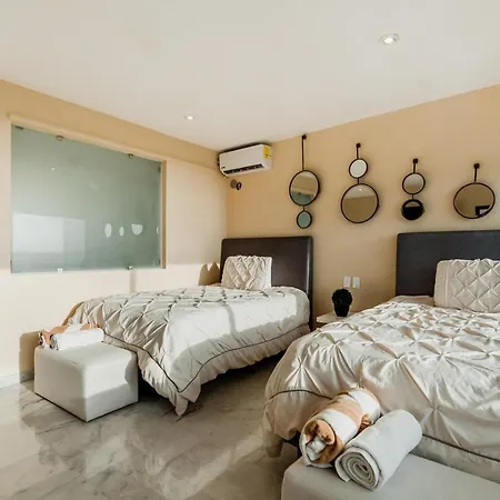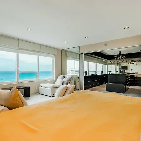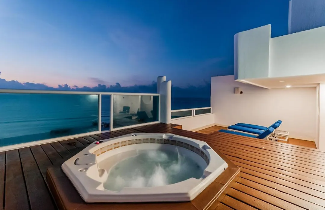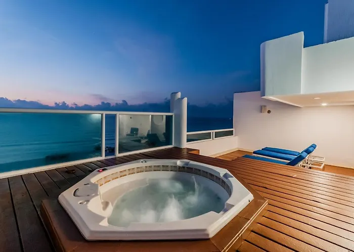 Dit Rooftop Private Jacuzzi In Beach Front Penthouse met 3 sterren is gesitueerd in Cancún circa 7 km verwijderd van de Museo Subacuático de Arte en biedt een buitenzwembad. Het aparthotel beschikt over spatherapie en BBQ-voorzieningen en kamers met uitzicht op de zee.